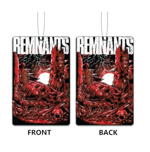 Air freshener for your car with double sided Remnants Dino design and black ice scent.